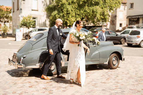 Nous avons ensuite pris la route vers le magnifique domaine des Gaillardoux, niché à Montdoumerc, que je découvrais pour la première fois. En chemin, nous avons fait une halte dans la vallée pour quelques photos avec la voiture, permettant ainsi aux invités d’arriver tranquillement avant les mariés.