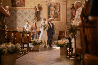 Après la mairie, direction l’église pour une cérémonie religieuse touchante. Là, j’ai été émerveillée par la décoration incroyable réalisée par Poppy et Daisy, qui a su créer une atmosphère féerique.